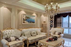 3.顶部灯盘或者壁画,中国也有顶部绘画的习惯,但是不同的是,欧式风格中的绘画多以基督教内容。而中国更多的是祥云及吉祥图案,宗教色彩相对较低。顶部造型常用藻井,拱顶,尖肋拱顶,穹顶。与中式的藻井方式不同的是欧式的藻井吊顶有更丰富的阴角线。某些欧式吊顶中也常用木材,如地中海和殖民风格中。