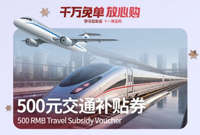 奔赴理想家的路上,佛山罗浮宫家居助你一程一步到位焕新家。注册成为「罗浮宫会员」购物后凭单程票券领交通补贴(机票/高铁/动车均可)每人最高补贴500元!