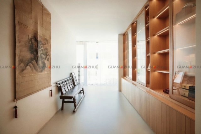 「冠珠魔术师岩板-星河银」就是砖如其名,特别的神秘深邃。哑光质感却非常耐脏耐磨,咱们朋友聚会吃的喝的不小心撒地上也不显痕迹,容易清洁,这块砖让我少挨了好多唠叨!来到休闲空间,迎面看到的是一面原木书柜。温润的木纹和冠珠魔术师岩板的冷冽肌理碰撞出奇妙的设计感,整个空间给人的感觉十分安定和静谧。