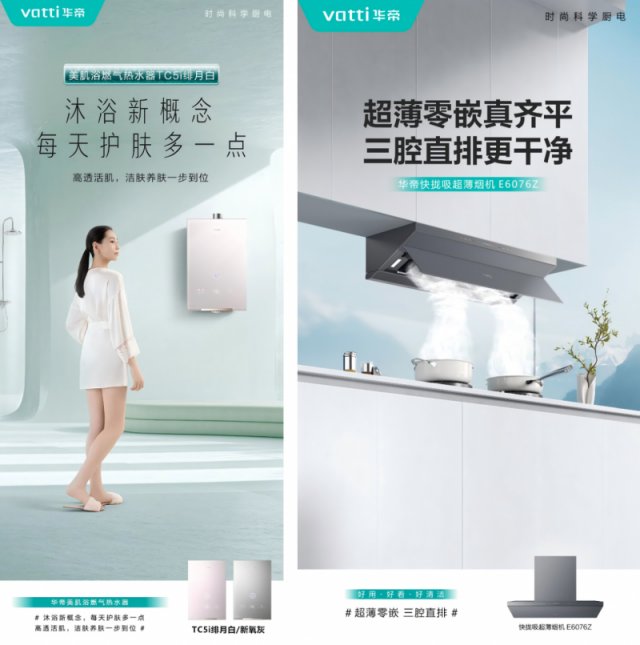 在产品层面,华帝聚焦三大核心品类,以创新科技回应现代厨房的健康与效能需求。美肌浴热水器将护肤科技融入沐浴体验,实现肌肤清洁与养护的双重升级;燃气灶具配备智能爆炒功能,兼顾猛火效率与安全节能;超薄烟机以精巧设计实现与橱柜无缝融合,依托三腔拢烟结构和强劲吸力有效防控油烟扩散。