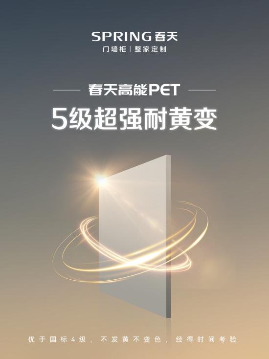 时光和阳光是色彩最大的考验。春天高能PET饰面耐黄变等级达到5级,优于国标4级标准。即使长久使用,太阳直晒,能保持本色,不发黄、不变色,让家的色彩恒久鲜活如初。