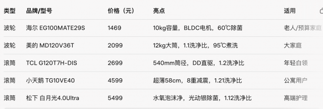 市场品牌林立,海尔、美的、小天鹅、西门子、松下等霸榜。以下精选性价比款: