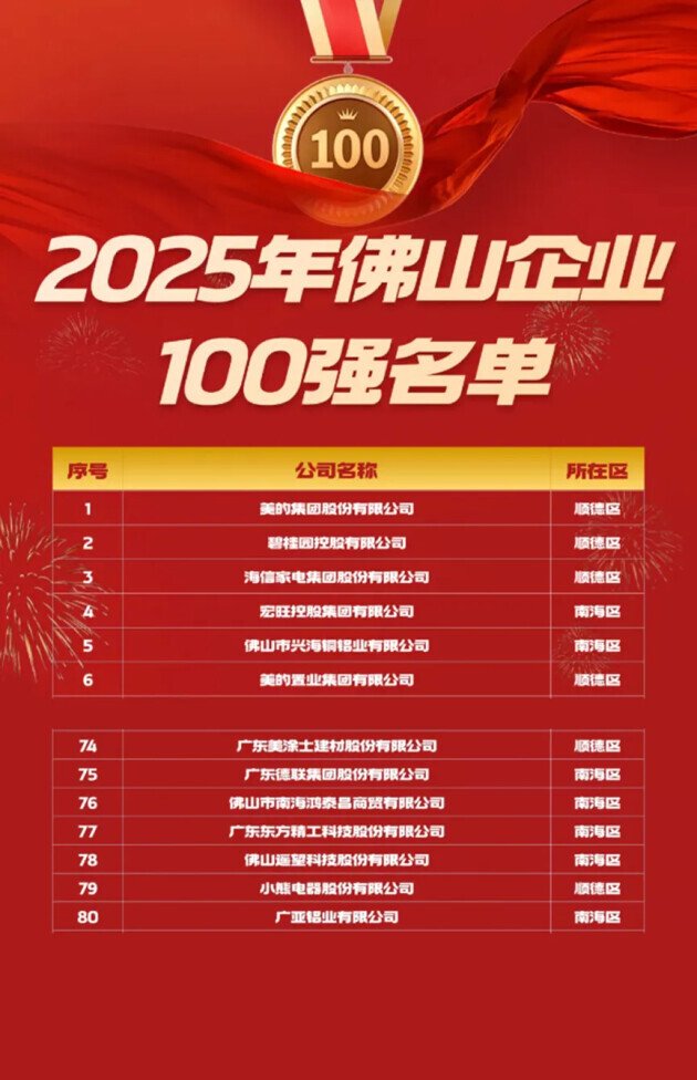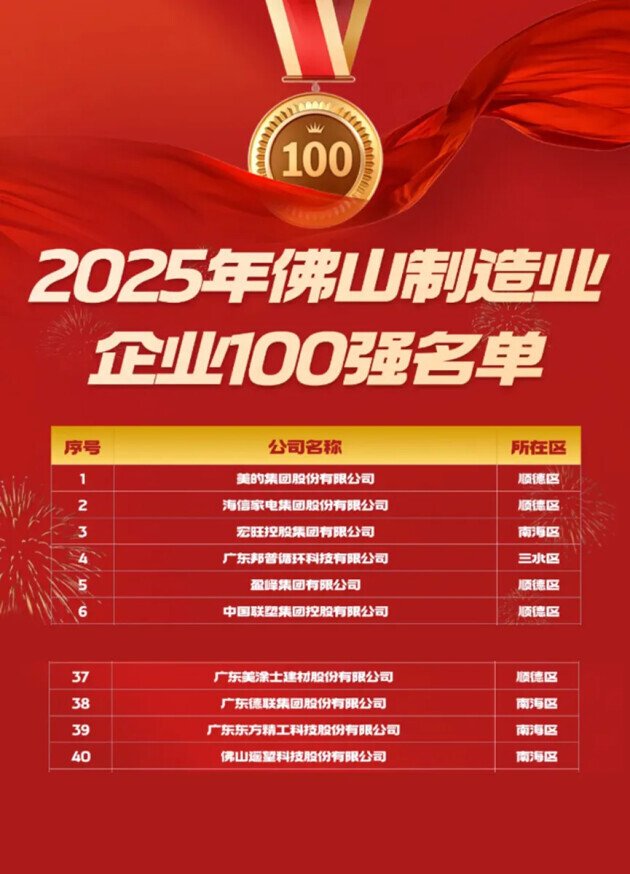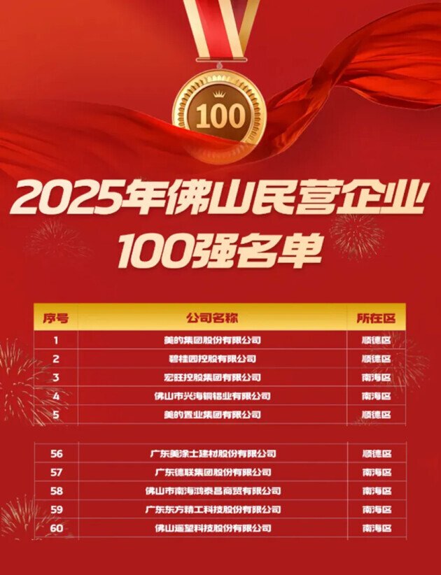 2025年9月27日,佛山市企业家大会暨人才发展大会召开,2025年佛山企业三大“百强榜”正式揭晓。广东美涂士建材股份有限公司凭借卓越的综合实力,强势跻身佛山民营企业100强(第56位)、佛山制造业企业100强(第37位)及佛山企业100强(第74位)三大榜单。