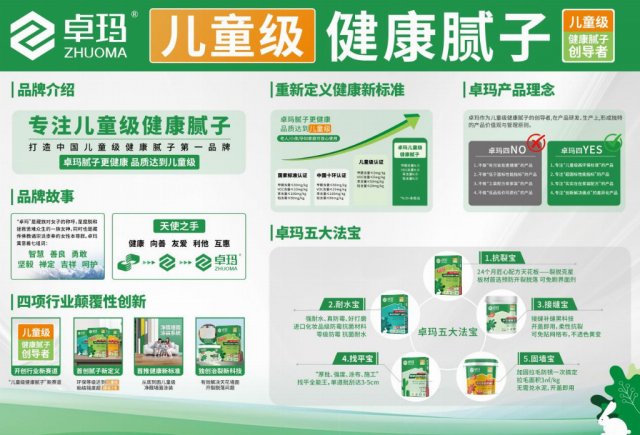 卓玛儿童级健康腻子一直以来都以“守护家庭健康”为核心理念,致力于为消费者提供环保、安全、高品质的家居建材产品。其产品采用先进的环保配方和生产工艺,严格遵循儿童级健康标准,从源头上杜绝有害物质的释放,确保产品在使用过程中对人体无害,尤其适合有儿童、孕妇和老人的家庭、高端住宅使用。