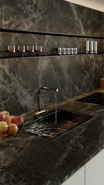采风·崎境系列不仅是对自然美学的致敬,更是让每一块岩板都成为记录时光的载体,在人与自然的对话中,完成一场关于永恒与变迁的美学探索。让每一寸空间都成为可触摸的山水画卷,让每一次驻足都能感受天地造境时的匠心与诗意。