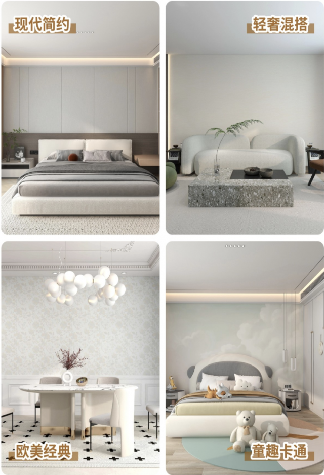 墙布就不一样,花纹样式多到挑花眼,从简约纯色到复古肌理,