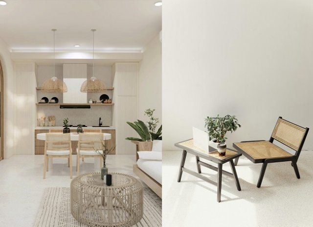 而藤编元素的加入,更是点睛之笔,带来轻盈的透气感,进一步丰富空间美学层次。当秋日的阳光穿过藤隙,在地面、墙面洒下斑驳光影,能够为静态空间注入灵动的自然韵律。
