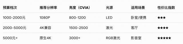 2. 评估预算。2025年市场,家用投影仪大致分三档:1000-2000元入门级,适合学生或预算有限家庭,提供基本1080P画质和简单智能功能;2000-5000元中端档,平衡性价比,激光光源为主,亮度达2000CVIA流明以上,适合大多数客厅;5000元以上高端档,4K原生分辨率、顶级音效,针对影音发烧友。建议预算控制在需求80%的配置上,别一味追求“全能王”,否则容易多花冤枉钱。