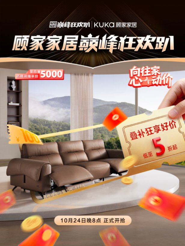 10月24日晚8,顾家家居京东巅峰狂欢趴重磅开启,本次顾家家居以“向往家,心动价”为主题,聚焦产品升级,推出多款创新电动沙发,其中云栖按摩沙发作为顾家首款按摩沙发,成为本次大促的明星产品,重新定义居家放松场景。