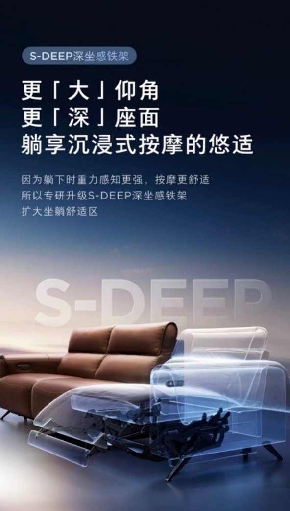 在坐感方面云栖沙发也实现全面升级,搭载S-DEEP深坐感0靠墙功能架带来更「大」仰角和更「深」座面,躺享沉浸式按摩的悠适。在支持零靠墙摆放外,云栖沙发坐深加深8cm,满足不同坐趟姿,坐高降低3cm,小个子坐上去脚部也不会悬空,放松双腿。