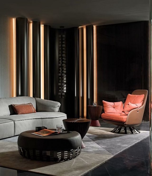 若更偏爱神秘莫测的暗黑美学,不妨让暗黑色成为空间的“主角”,营造出电影般的深邃质感,加以灯带装饰一番,整个家更具戏剧张力。适当增添亮色、金属色等灵动点缀,平衡视觉层次,避免沉闷压抑。