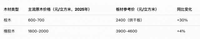 三、2025年价格对比:橡胶木稳居高位,桉木亲民有惊喜
